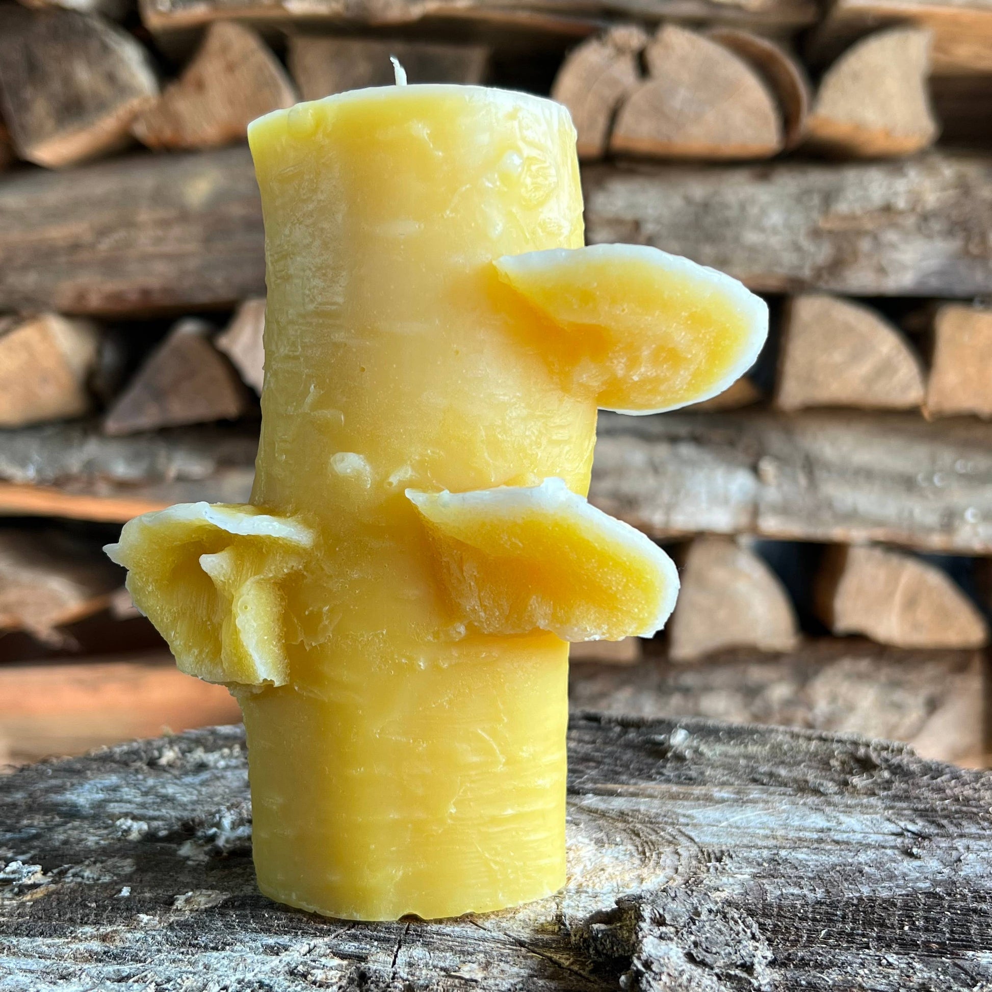Our Birch Pillar Candle is Cast from a Trunk Section With Three Painter's Fungi, a Voided Branch Node, and a Compound Curve.