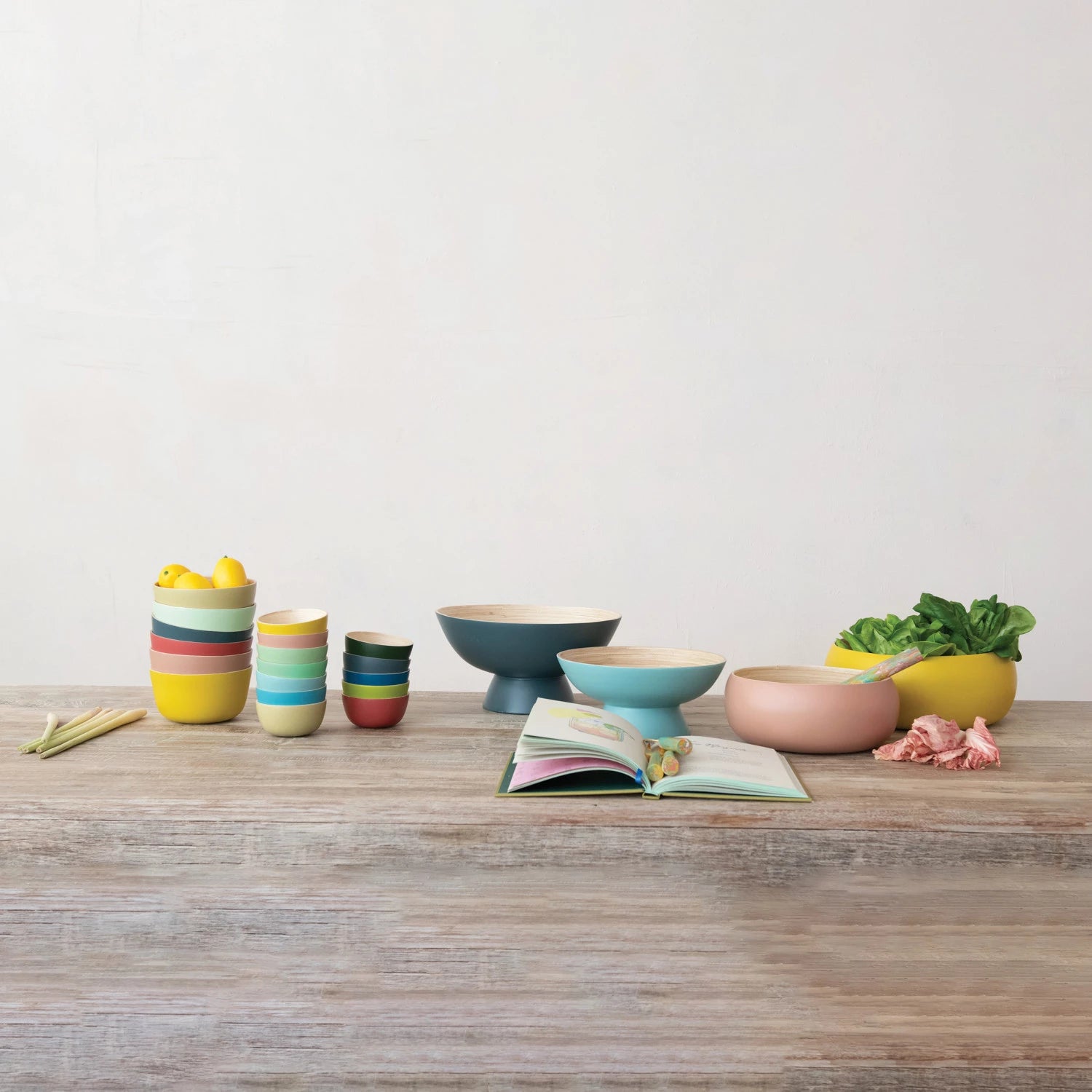 Bamboo Bowl w/ Natural Finish Inside, 12 Matte Colors