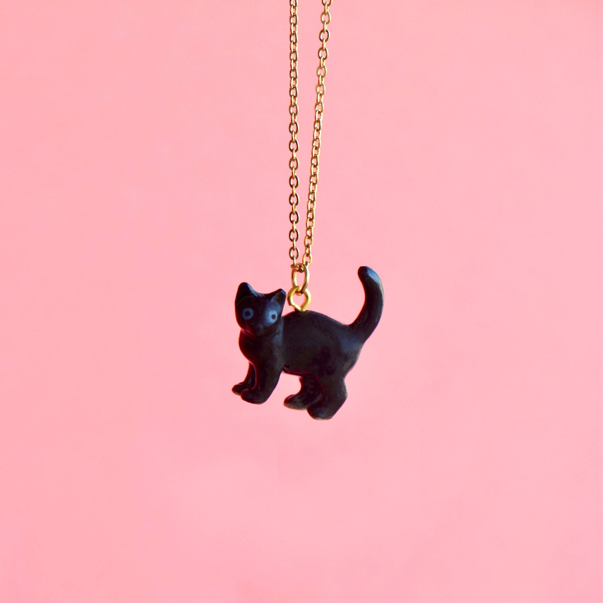 Defy superstitions and embrace enchantment with our Black Cat Necklace. Hand-painted in the deep hues of an inky night sky, this porcelain pendant breaks the mold of fabled misfortune, offering only good vibes and magical allure. Due to the handmade nature of this product, slight variations in color and design may occur, making each piece truly one-of-a-kind. Perfect for cat lovers and those who revel in the mystical.