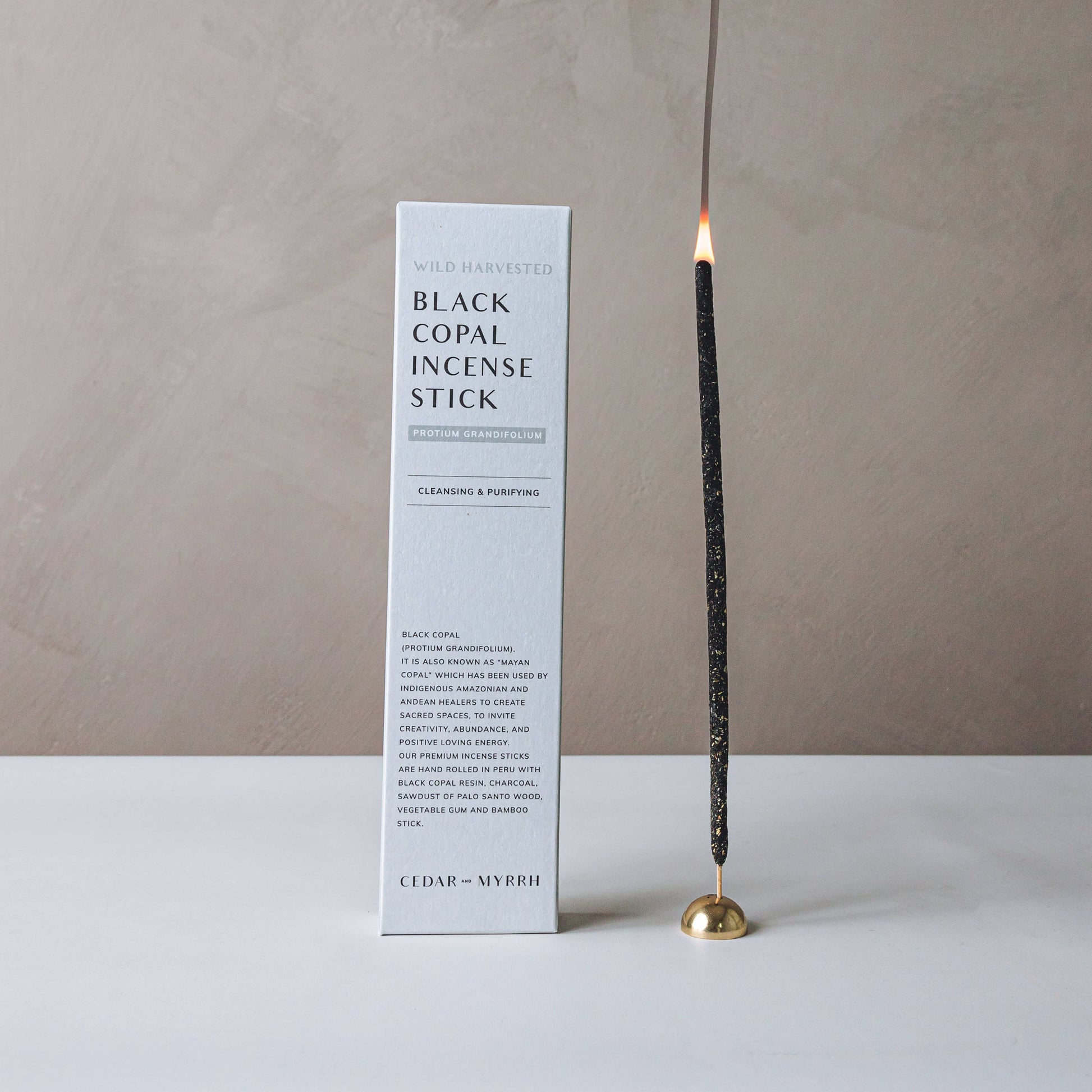 Our premium Incense Sticks are hand rolled in Peru with Black Copal resin, Charcoal, sawdust of Palo Santo wood, vegetable gum and bamboo stick.