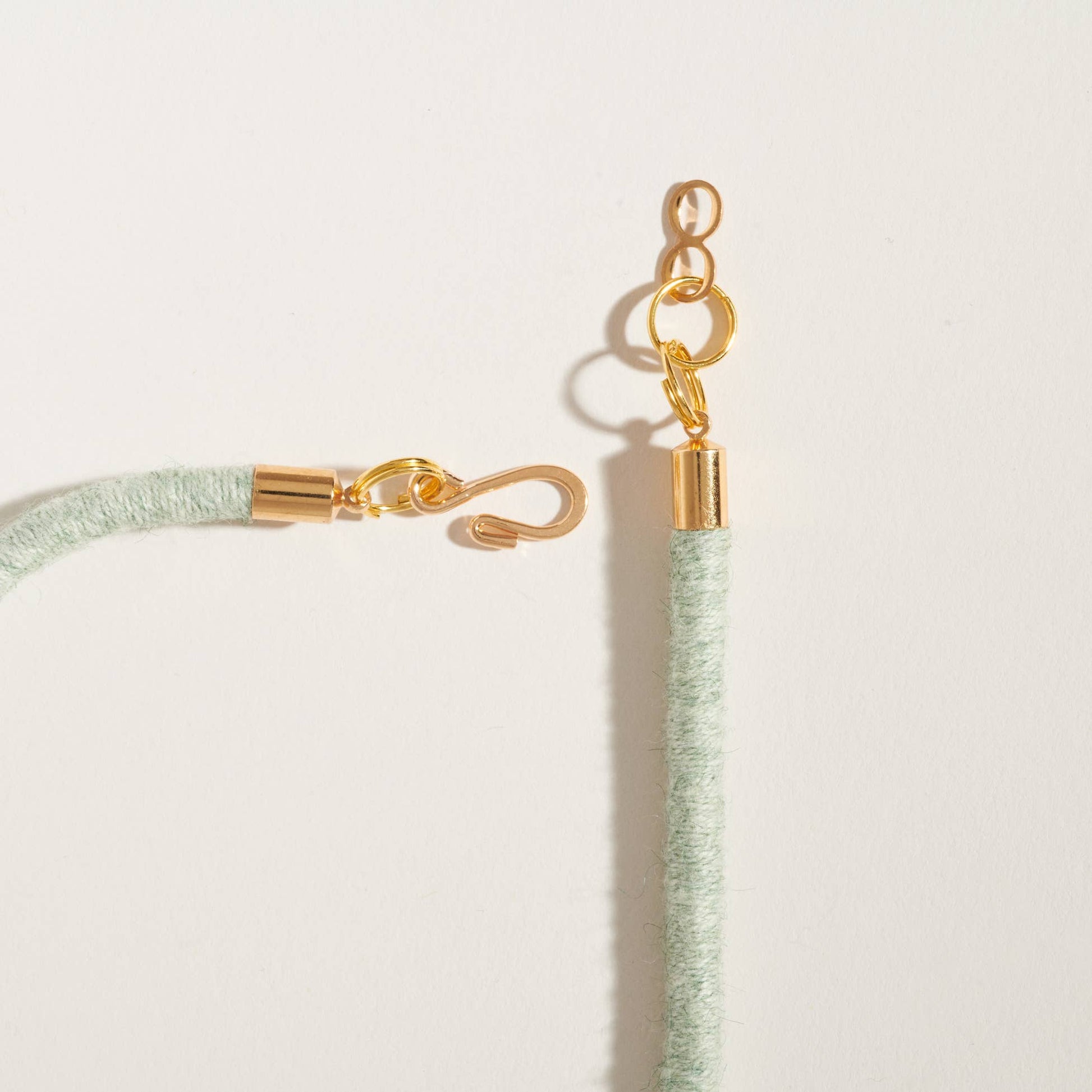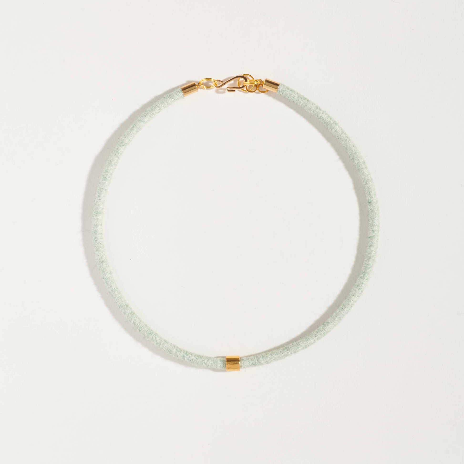 Using our thinnest cording, the Petit Necklace transforms into a sophisticated everyday choker. If you have ordered the Simple Necklace in the past, this style is thinner and sits shorter, above the collarbone. Shown and modeled in Mint Wool (color not currently available).