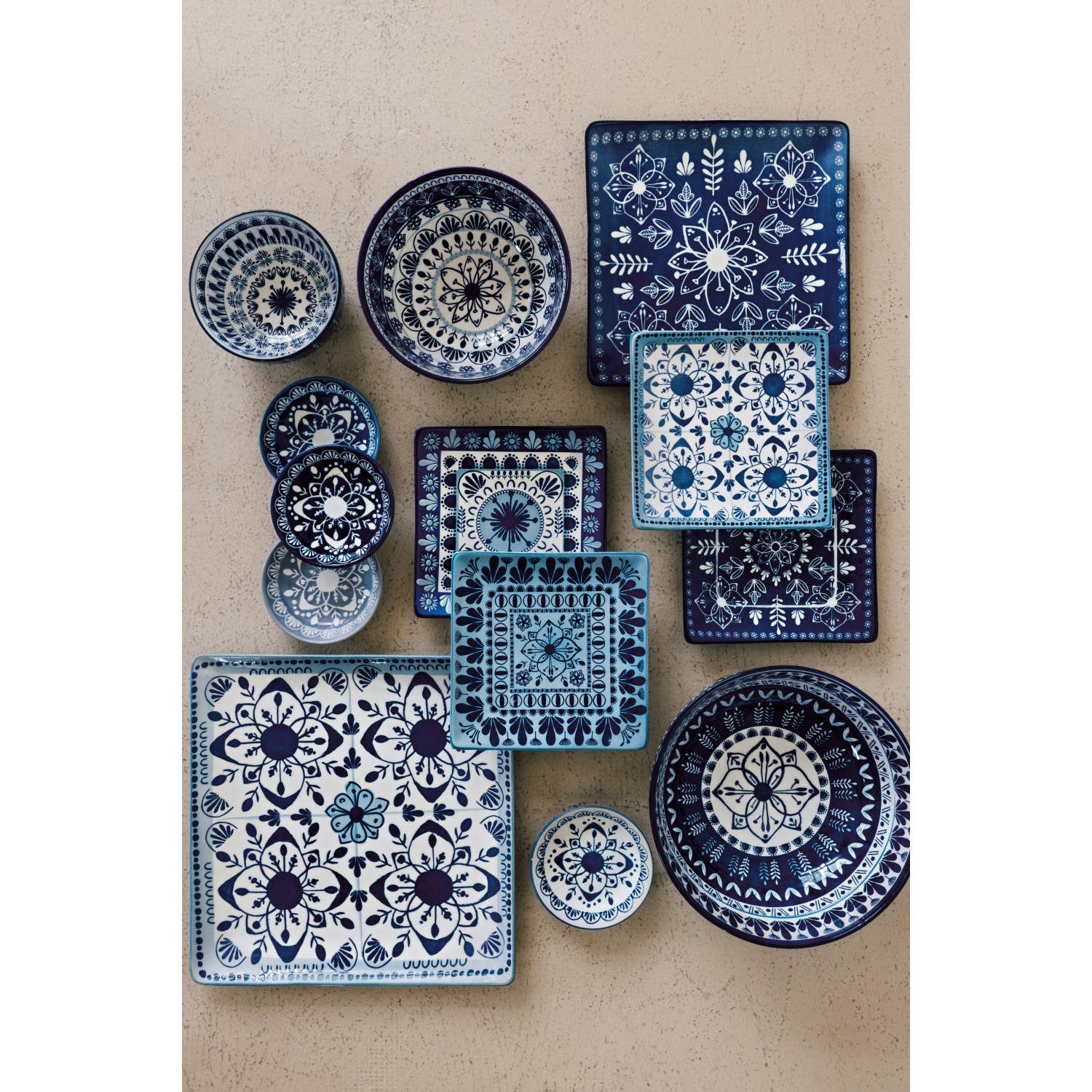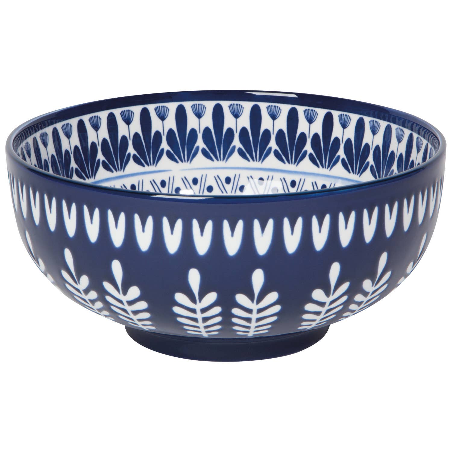 Eye-catching porcelain bowls with contrasting patterns are stunning, either as a collection or as accent pieces. Stamped designs feature bold patterns while embossed surfaces are a delight to the touch. Hand-painted rims are the final touch.