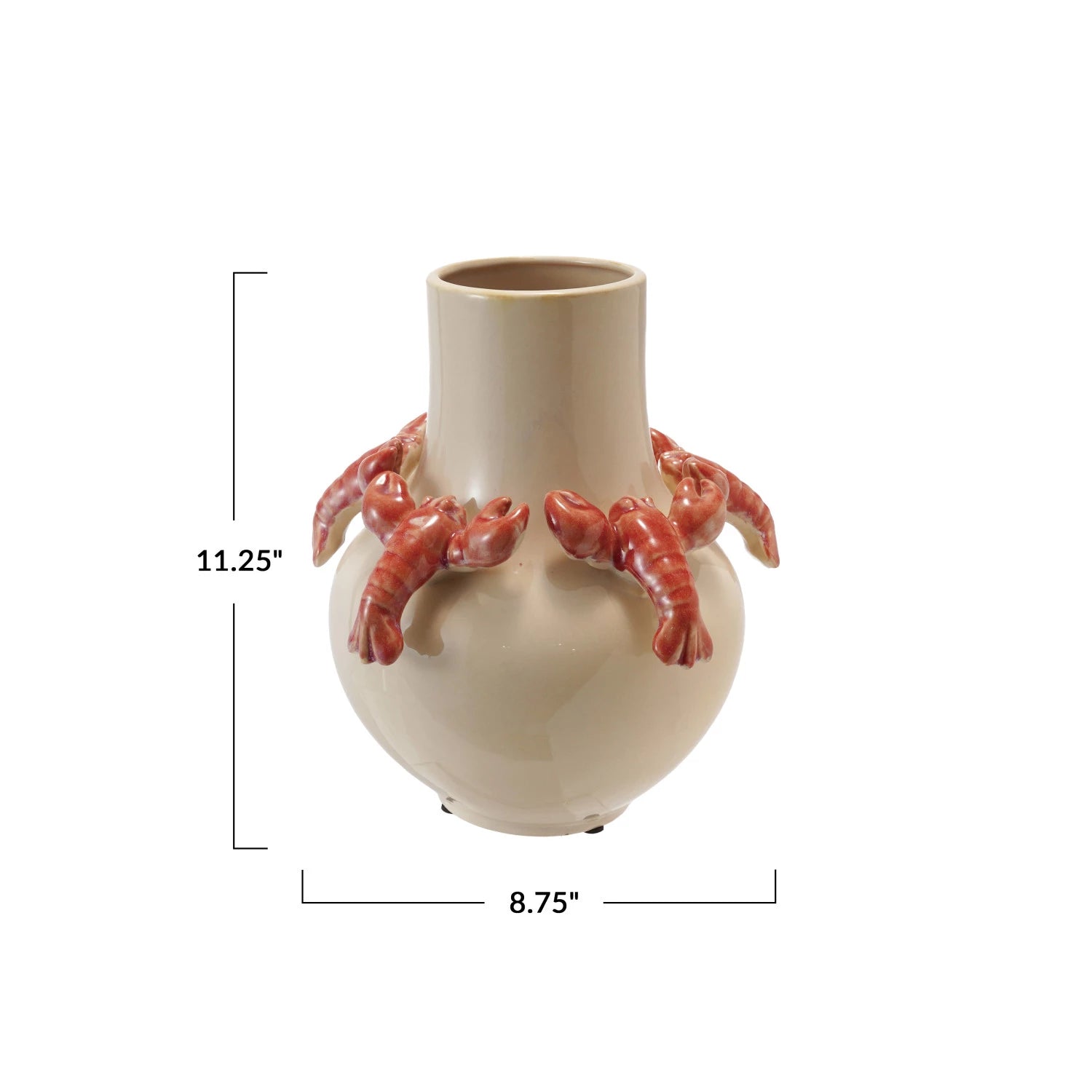 8-3/4" Round x 11-1/4"H Stoneware Vase w/ 3D Lobsters, Reactive Glaze, Cream & Orange Color, Truck Ship (Each One Will Vary)